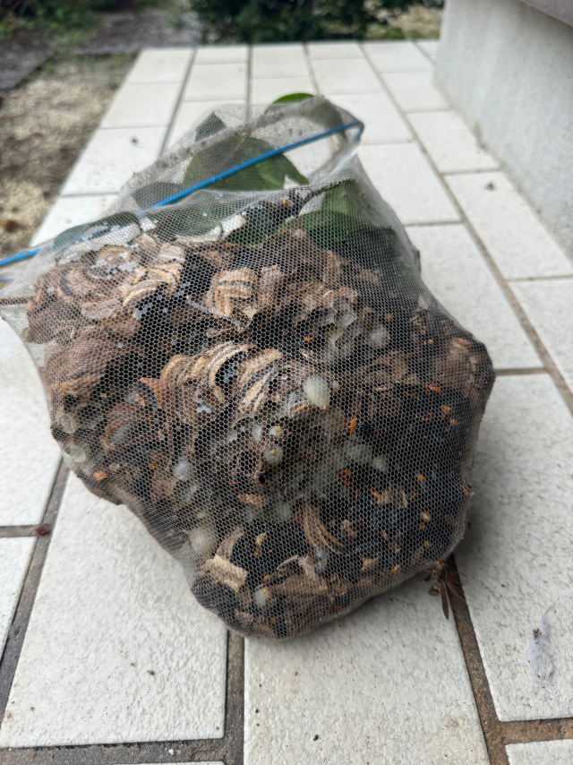 直接巣を叩いていれば数十匹の蜂に攻撃されていたでしょう、、