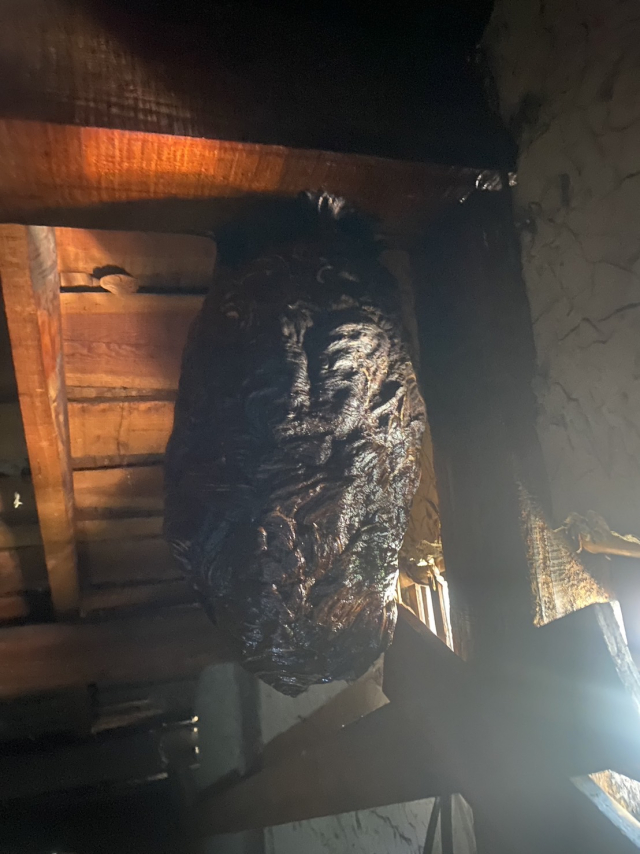 屋根裏に営巣したキイロスズメバチの巣を駆除してきました。